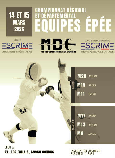 Vous trouverez ci-joint l'invitation aux championnats régionaux d'épée par équipes, M13 à M20, ainsi qu'un open par équipes de deux pour les M9 et M11.