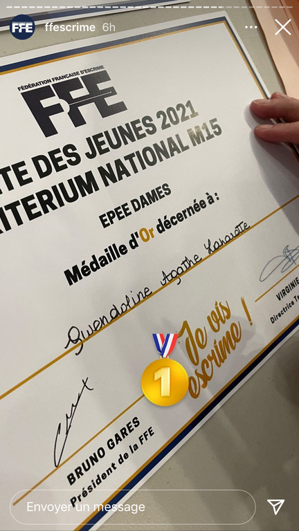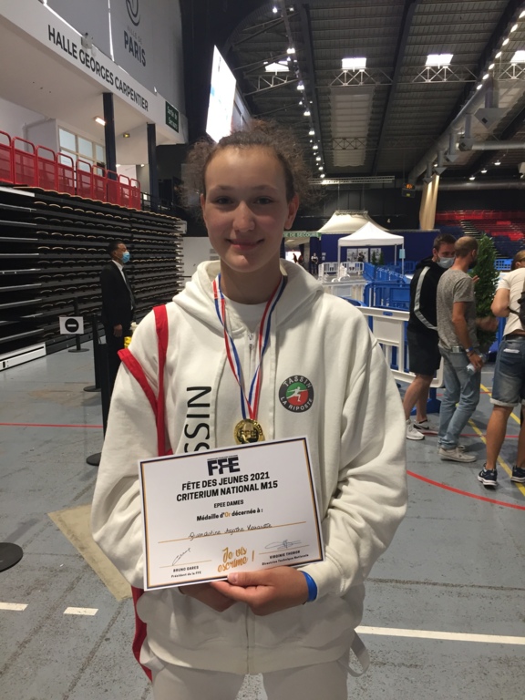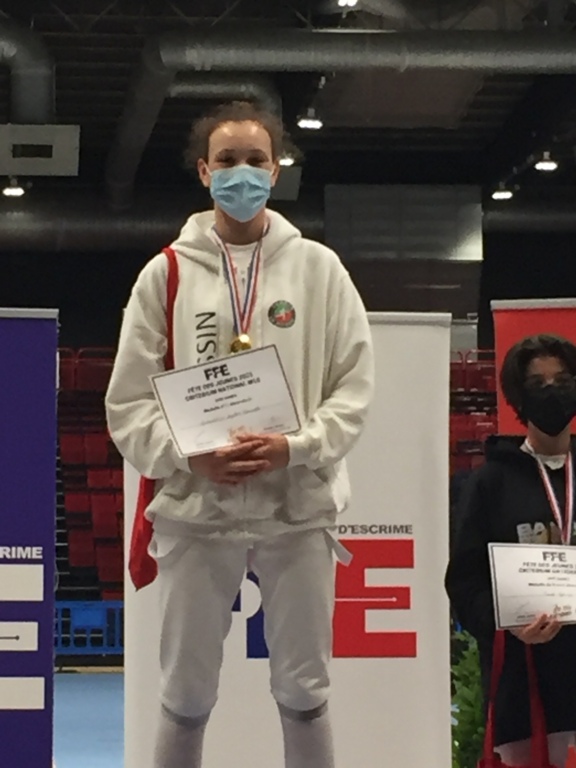 Après son doublet en M15 et M17 durant les épreuves de sélection et son titre de vice championne de france en M17 , Gwendoline monte sur la 1er marche du podium de la fête des jeunes.